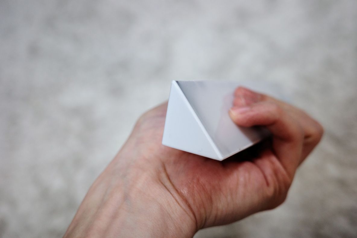 この形のおかげで設置後も無駄にスペースを取らず、見た目スッキリ。どこに置いてもなじんでくれるデザインです。