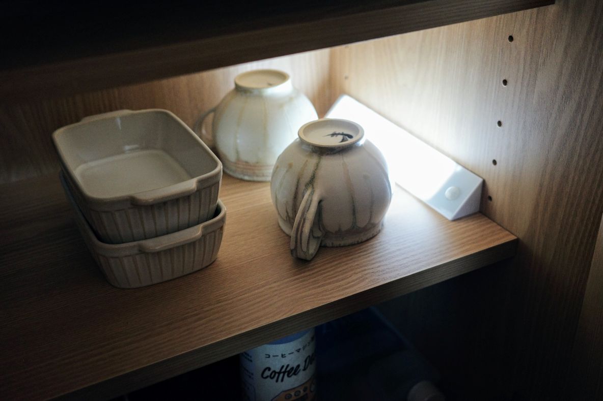 暗くて物が探しにくい場所に設置すると、ドアを開けた瞬間に点灯するので、必要なものが一目で見つかります。