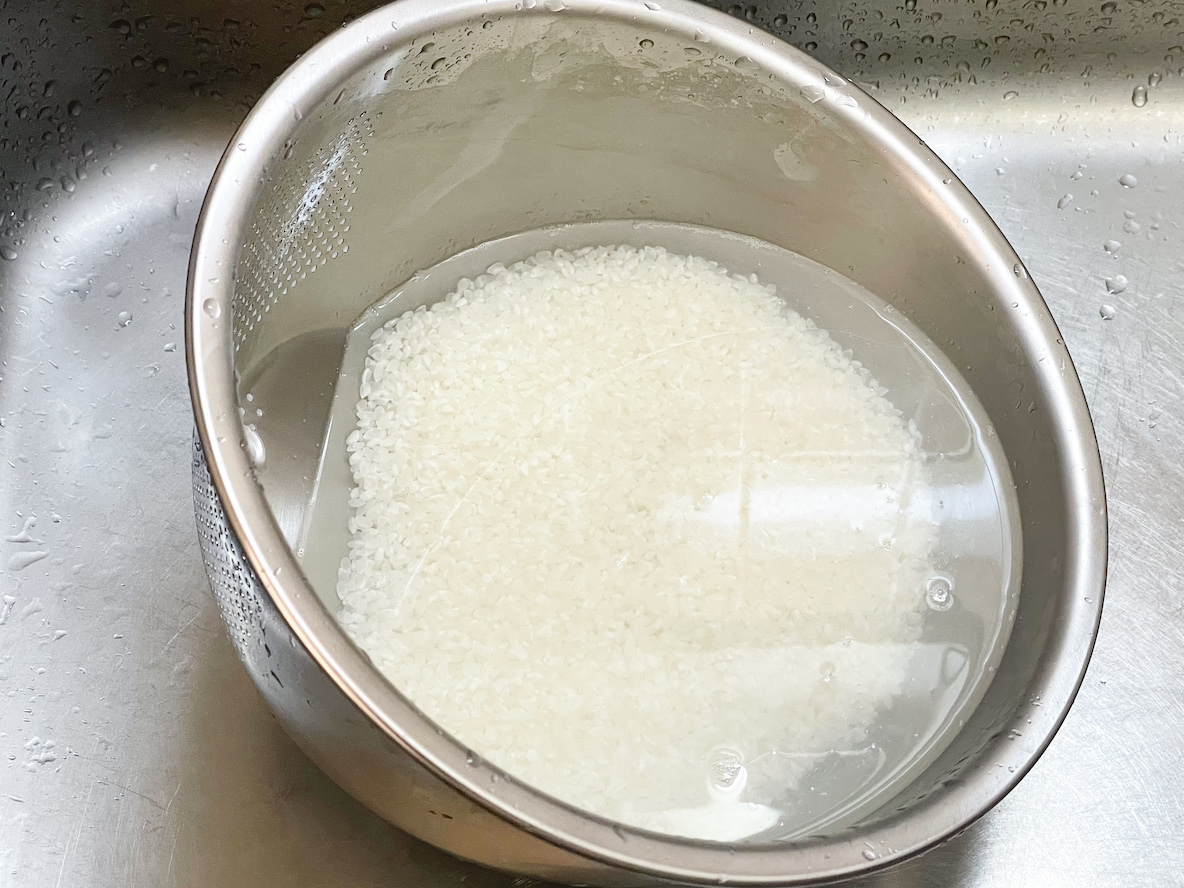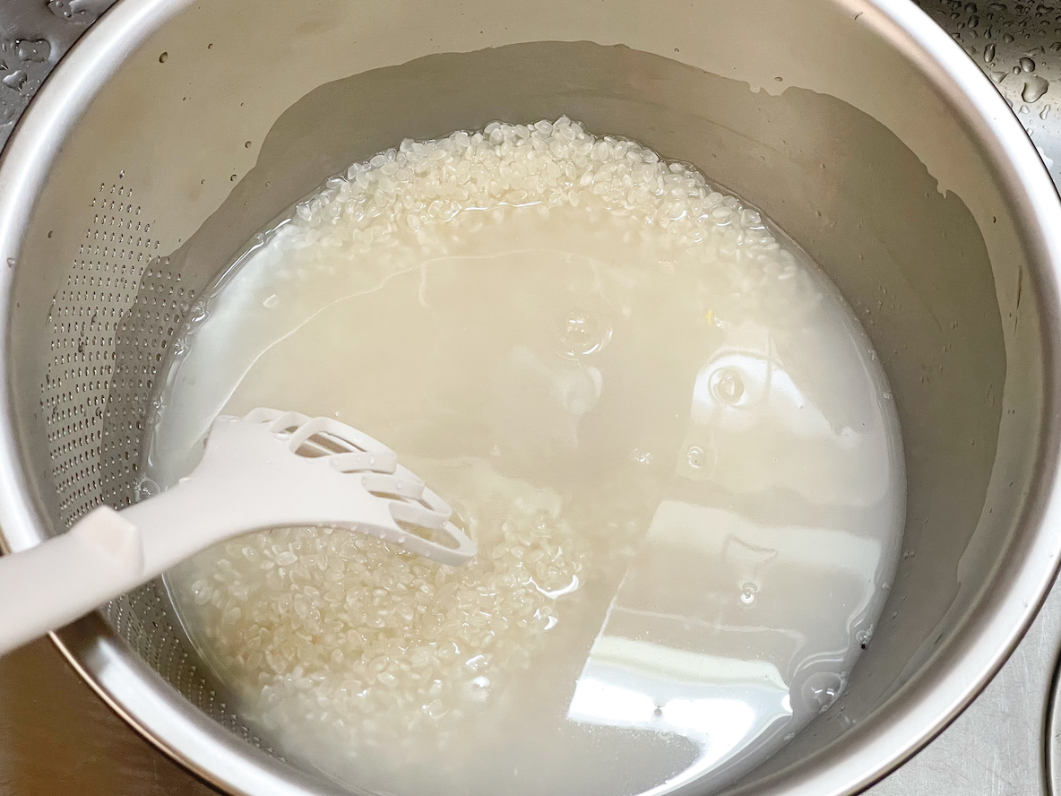 研ぎ終えたら、浸水も同じボウルでできます。