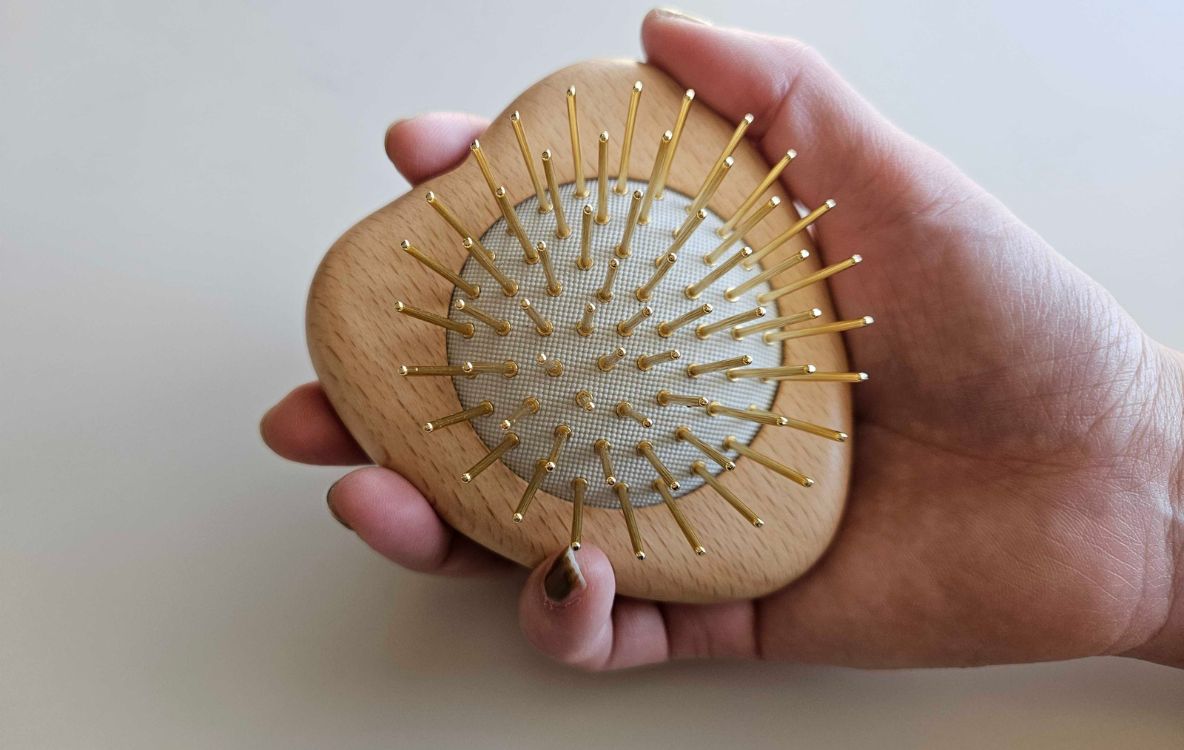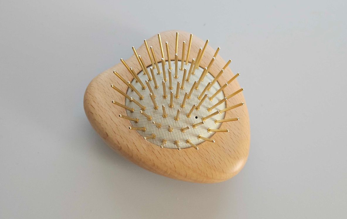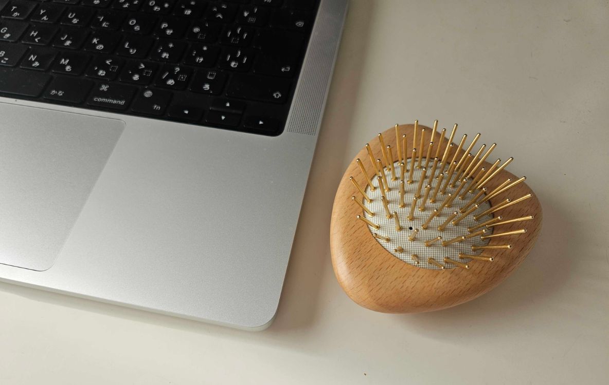 ピンがチタン製だからでしょうか。頭皮に当てたとき、ツンとした冷たさが感じられるんです。このクールな刺激は、寒い冬でもとっても気持ちいい。頭頂部って熱がこもりがちでもありますし。