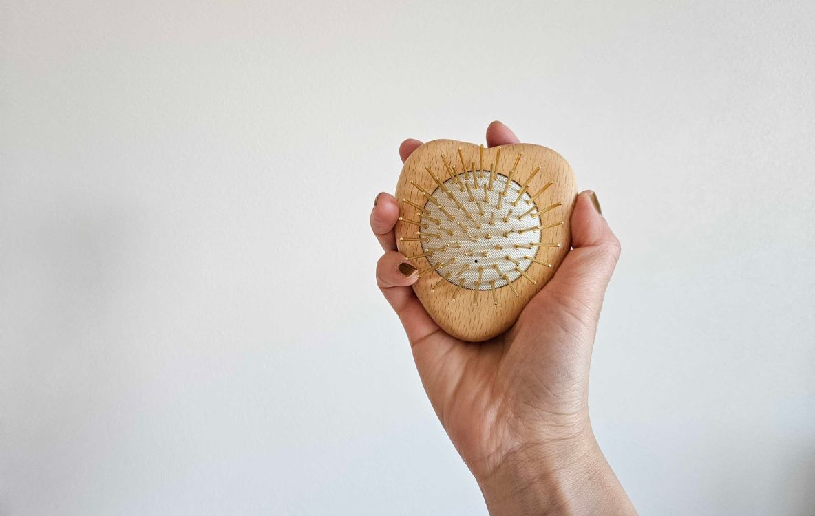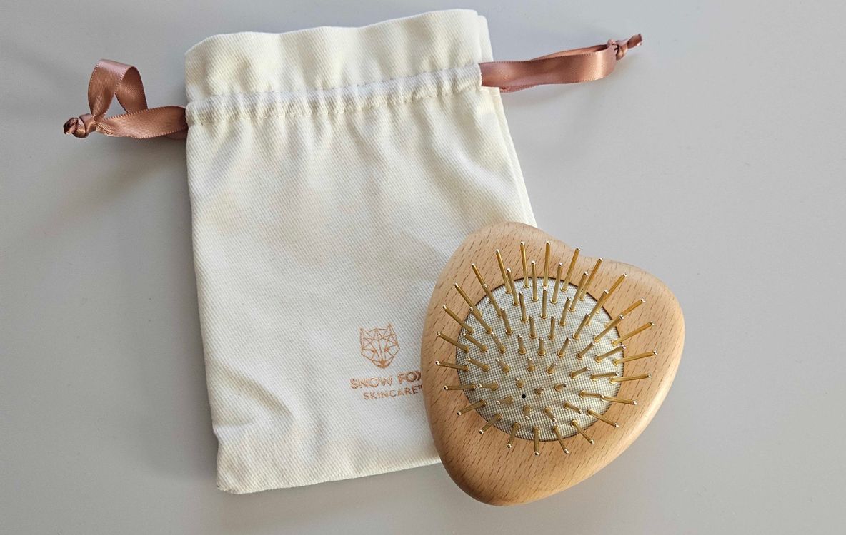 SNOW FOX SKINCAREの「プレミアム FOX カッサ ウッド ミニハート ヘアブラシ」は、頭皮をほぐしながら髪のケアができてヘアスタイルが整います。おまけに首や肩にも使えちゃう。想像以上に万能なブラシでした。