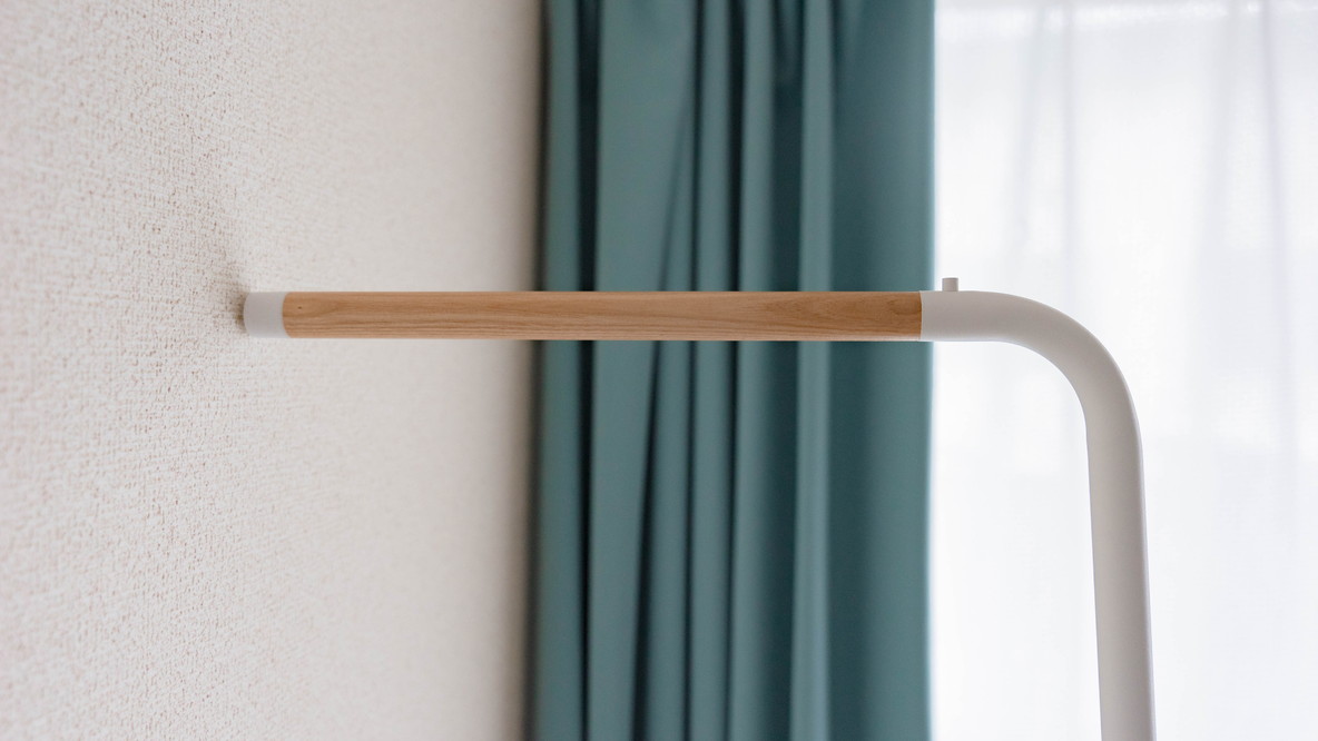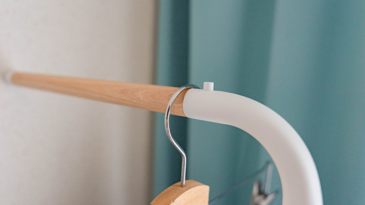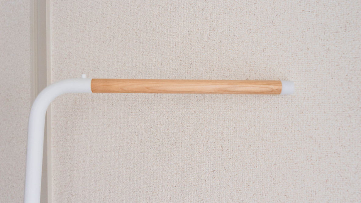 実際に衣類をかけることができるのは木のバー部分になります。さりげないナチュラルなデザインがお部屋のインテリアにも合ってお気に入りのポイント。