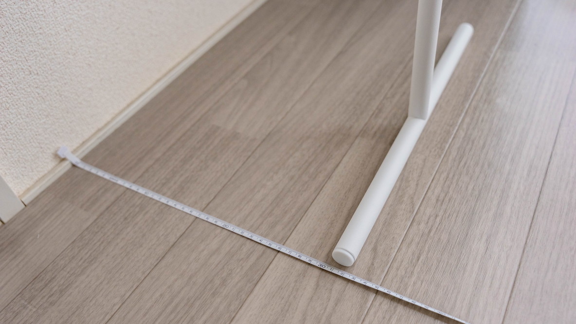 バランスよく自立できる幅を検証してみました。壁から約32㎝までが自立できる最小幅になりました。