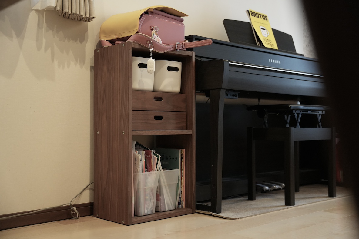 下の子が小学生になったときには、2段の追加のパーツを買って、2人分の学校用品が入るようにしたいな〜! なんて考えています。