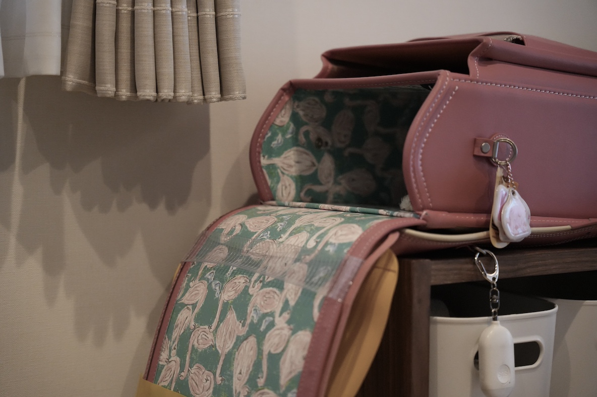 ランドセルはガバッと開けて中身の入れ替えなどをさせたかったのですが、上部のサイズがランドセルを置くのにちょうど良い大きさなんです。