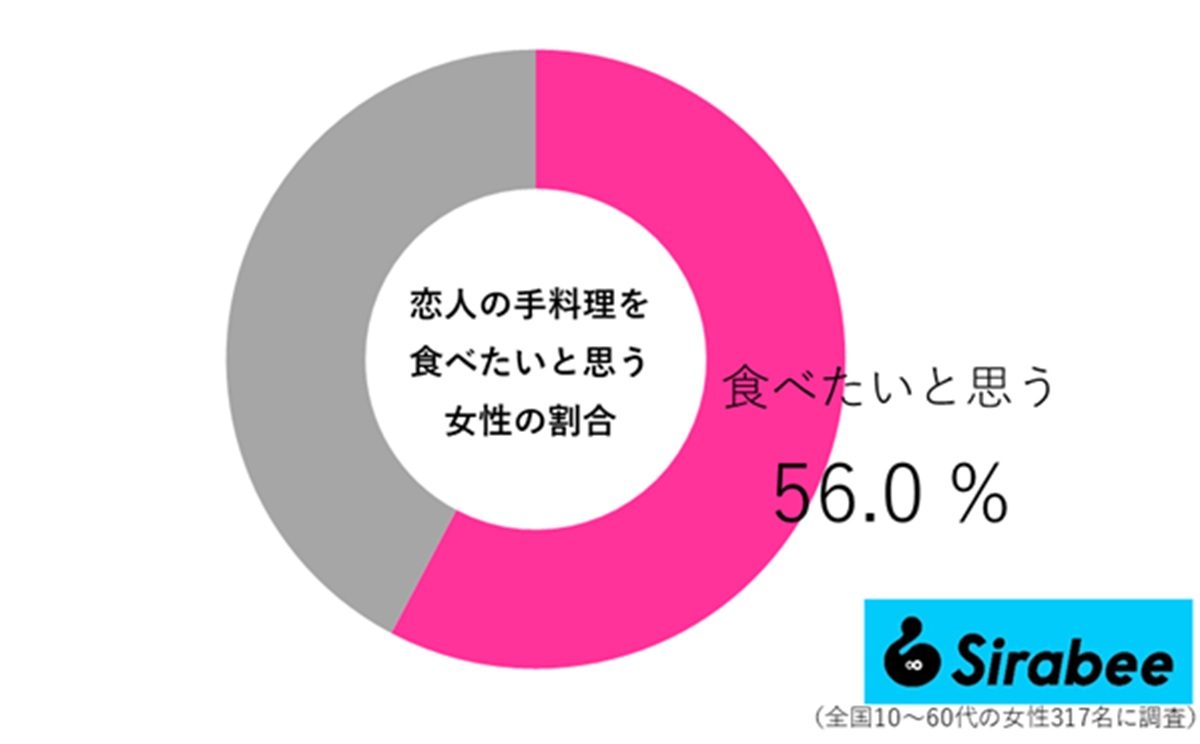 男性だけでなく、女性も過半数以上が「恋人の手料理を食べたいと思う」と答えていることが分かりました。