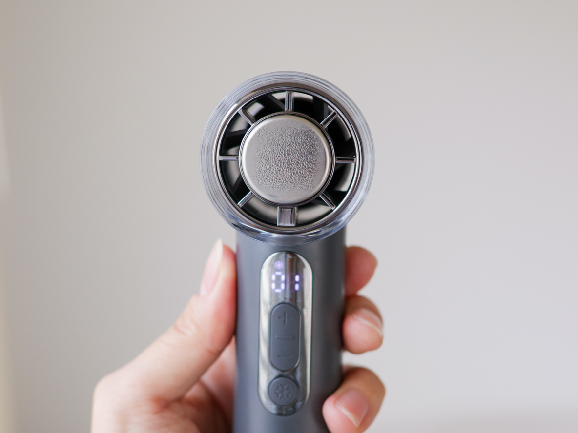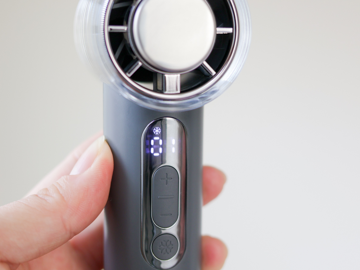 真夏の屋外でハンディファンを使うと、熱風を浴びるようで余計に暑い気がしていたのが、これならひんやりした風を浴びられるのは嬉しい〜。