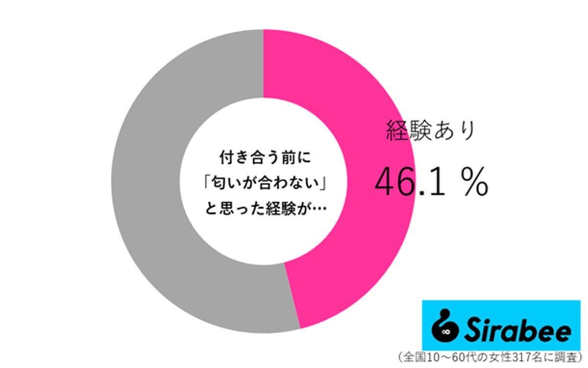 まずは、Sirabee編集部が「付き合う前に匂いが合わないと思った経験があるか」について、アンケート調査を実施しました。男女671票の回答を得た結果、男性35.9%女性46.1%が「経験あり」と回答しました。
