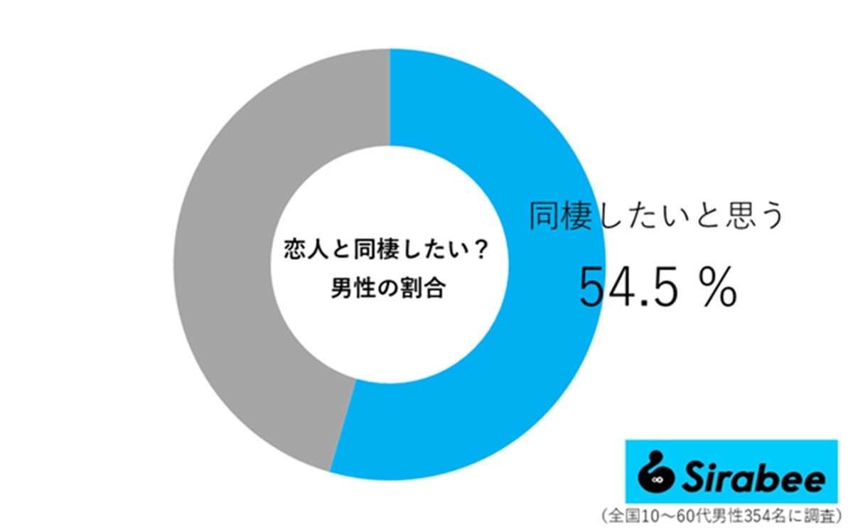 女性のほうが恋人との同棲をしたいと答える人が多いと思っていましたが、結果は意外にも男性のほうが多いことが判明しました。
