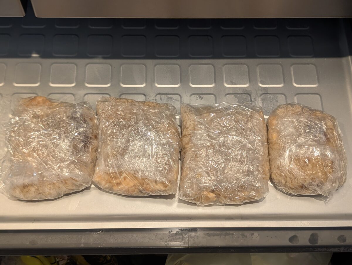 炊き込みご飯は小分けにして冷凍しておけば後で食べられるため、1食ぶんずつ冷凍庫に入れておくと便利。