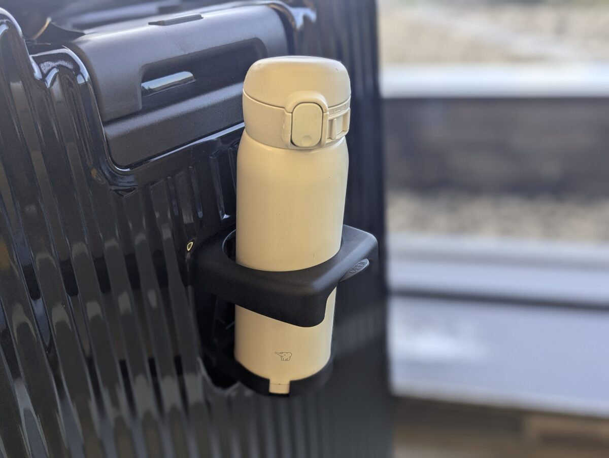 また、旅行中の水分補給に役立つドリンクホルダーにはサイズによるが水筒も入れられるため、ペットボトルから麦茶などを移し替えればぬるくなる心配もない。また、物掛けフックも付いている。