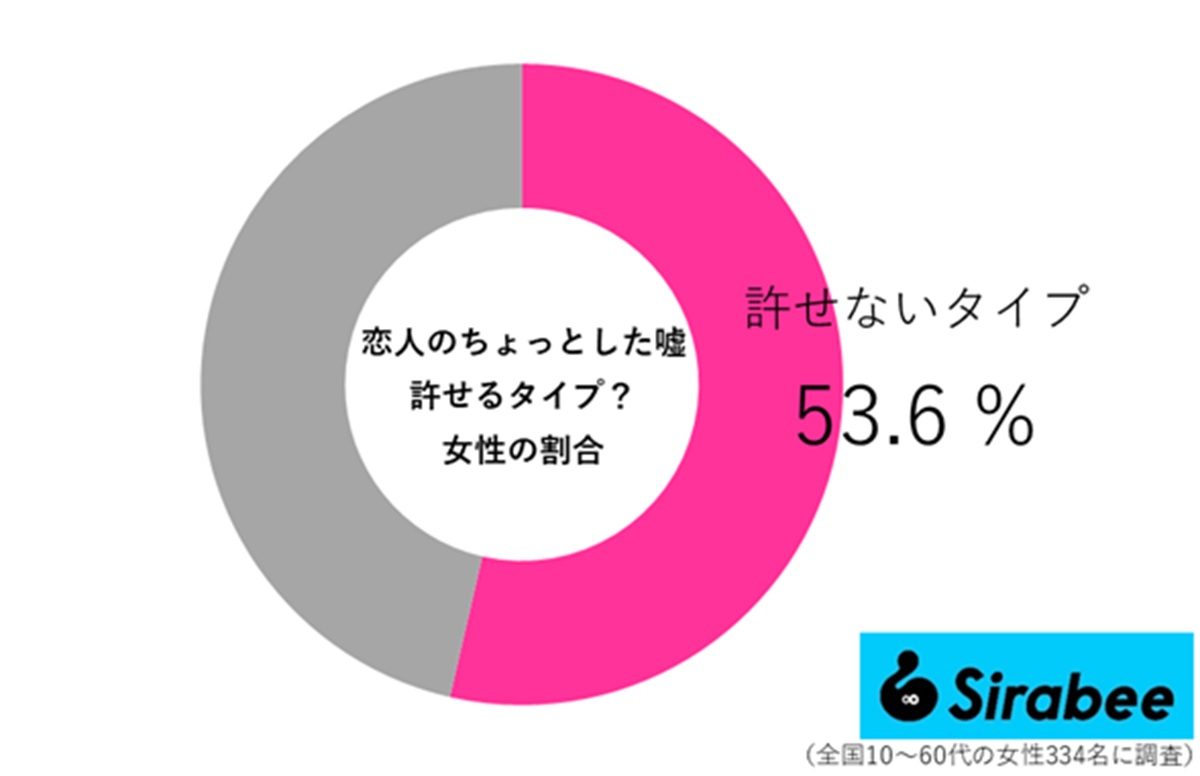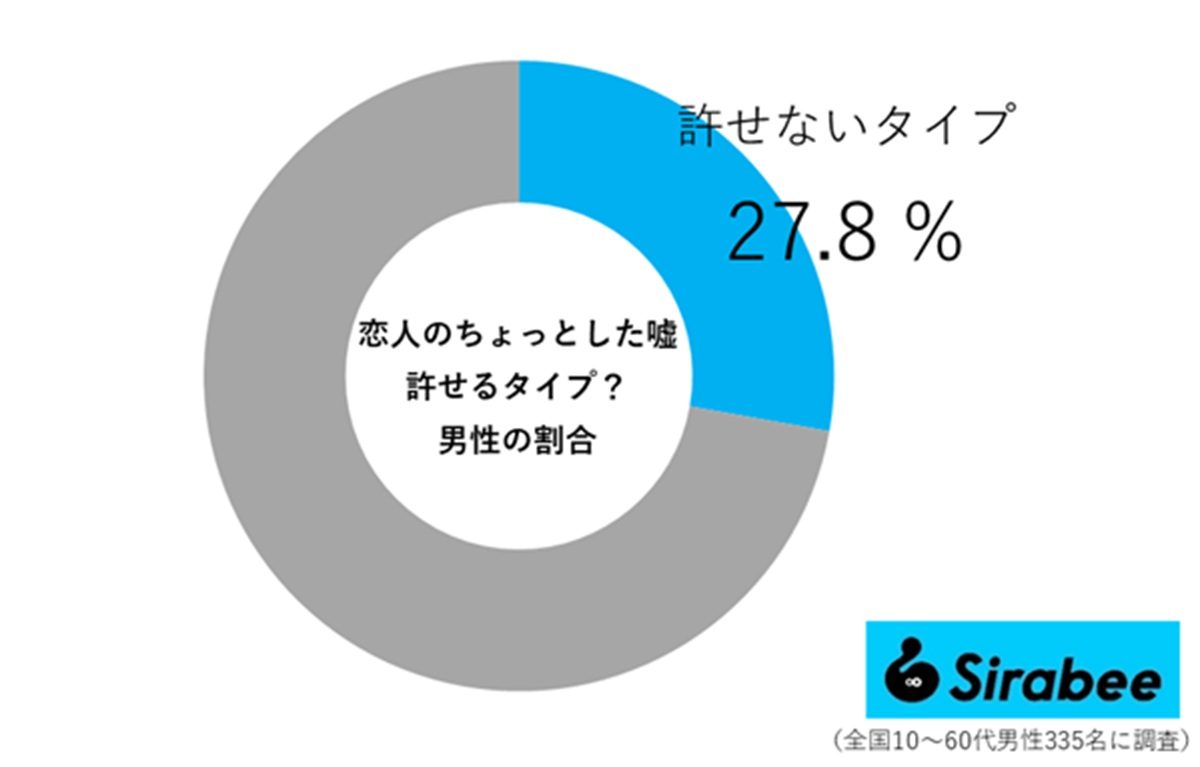 まずは、Sirabee編集部が「恋人のちょっとした嘘、許せるか」について、アンケート調査を実施。すると、男女669人の回答を得ることができ、男性27.8%女性53.6%が「許せないタイプ」と回答しました。