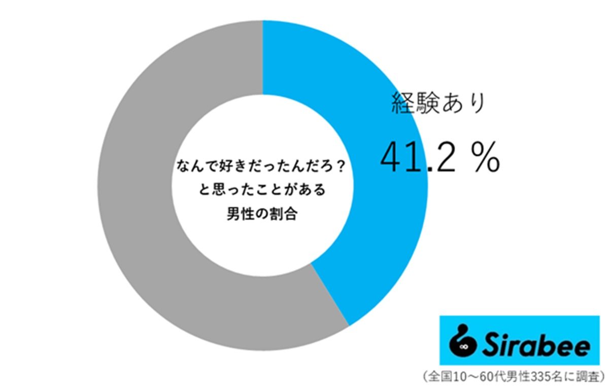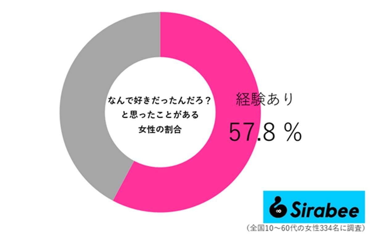 男性より女性のほうがその結果は高く、女性の2人に1人以上は「なんであんなに好きだったの?」と疑問に思う人が多いことが判明しました。