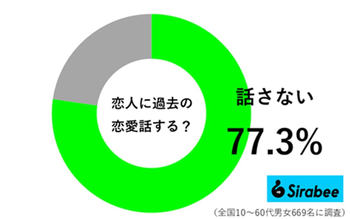 まずは、Sirabee編集部が「恋人に過去の恋愛話をするか」について、アンケート調査を実施。すると、男女669の回答を得ることができ、77.3%が「話さない」と回答しました。